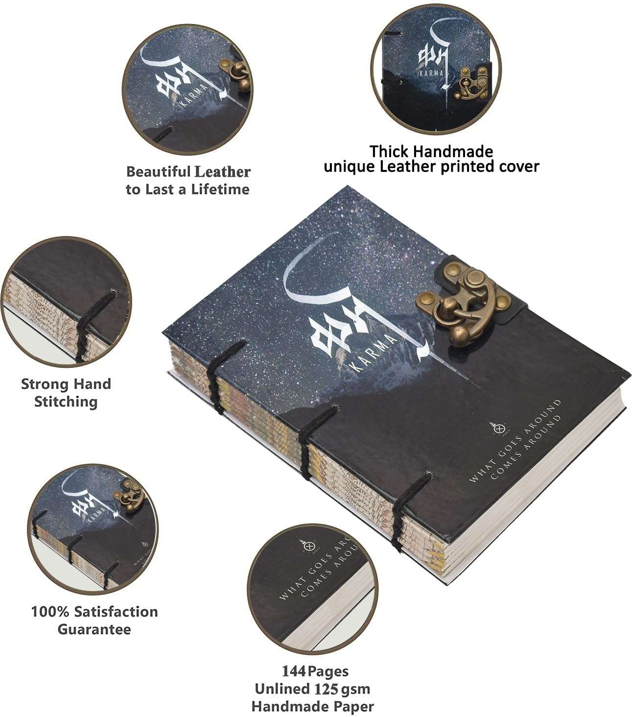 vintage handmade leather journal. Crafted with genuine leather, it radiates authenticity and charm, perfect for those who appreciate classic craftsmanship. The premium antique lock closure adds a touch of elegance and security, ensuring your thoughts and memories are safeguarded within its pages. Inside, you’ll discover 200 brown handmade pages, providing ample space for your musings, sketches, and stories to unfold. Whether it’s for journaling, sketching, or planning, this versatile journal is a timeless companion for your creative endeavors. Treat yourself or a loved one to this exquisite piece, a celebration of tradition and creativity