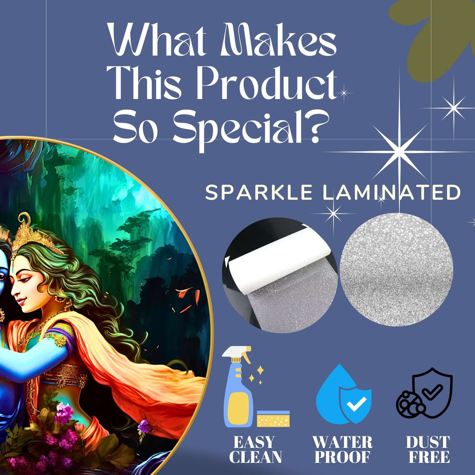 This Golden Round Frame painting with frame is made with high-gloss photo paper, featuring a unique glossy sparkle laminate that enhances the vibrancy and details of the artwork. Whether you are looking for a wall painting for living room or a wall painting for bedroom, this piece will add a touch of divinity and grace to any space. The high-quality finish ensures that this painting for wall decoration stands out.This Golden Round Frame painting big size is designed to fit seamlessly into your home decor, whether you are looking to enhance wall decor for bedroom or create an ambiance of peace in your living room. It is not just a Krishna Radha painting frame but also a meaningful symbol of love and devotion, making it one of the finest